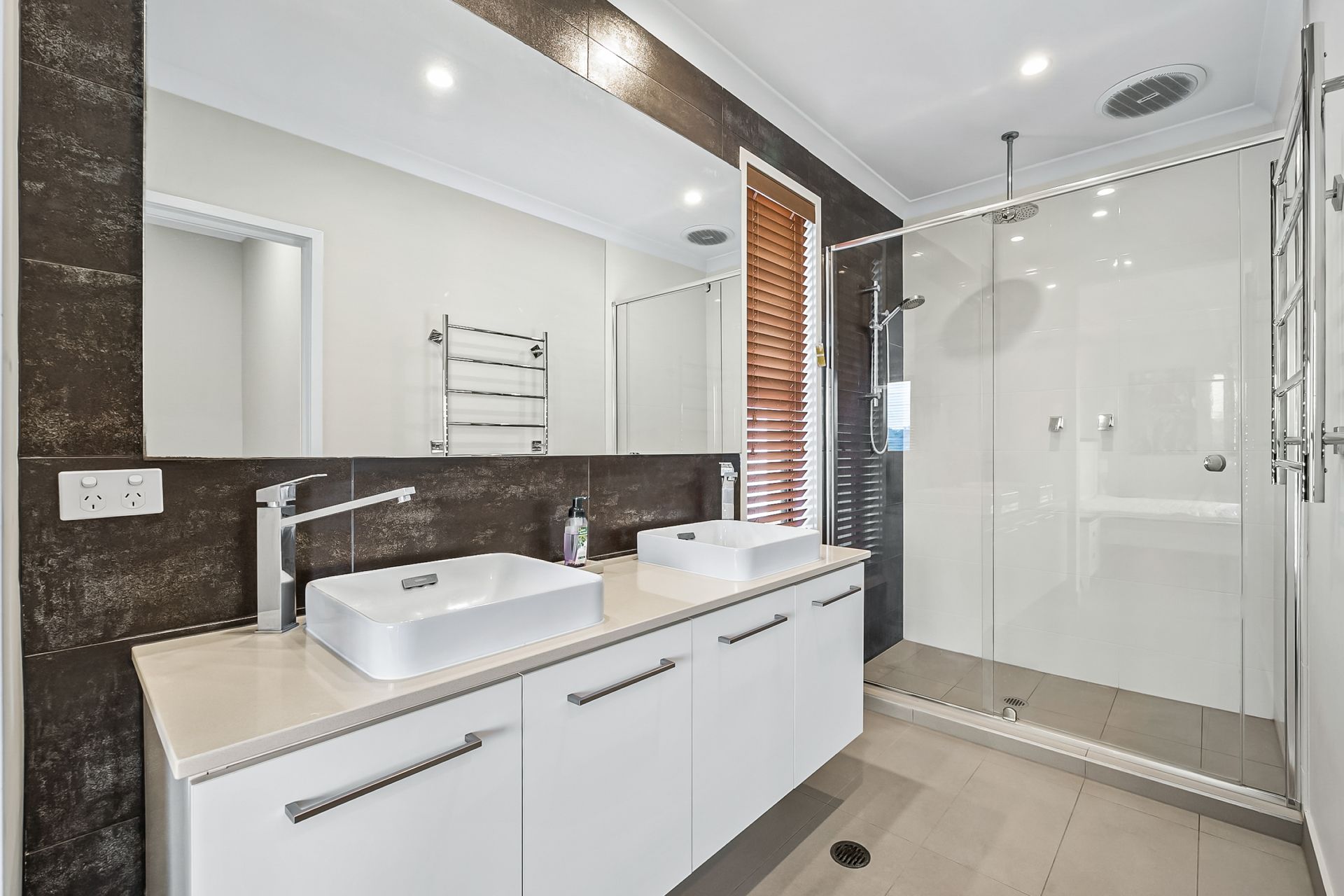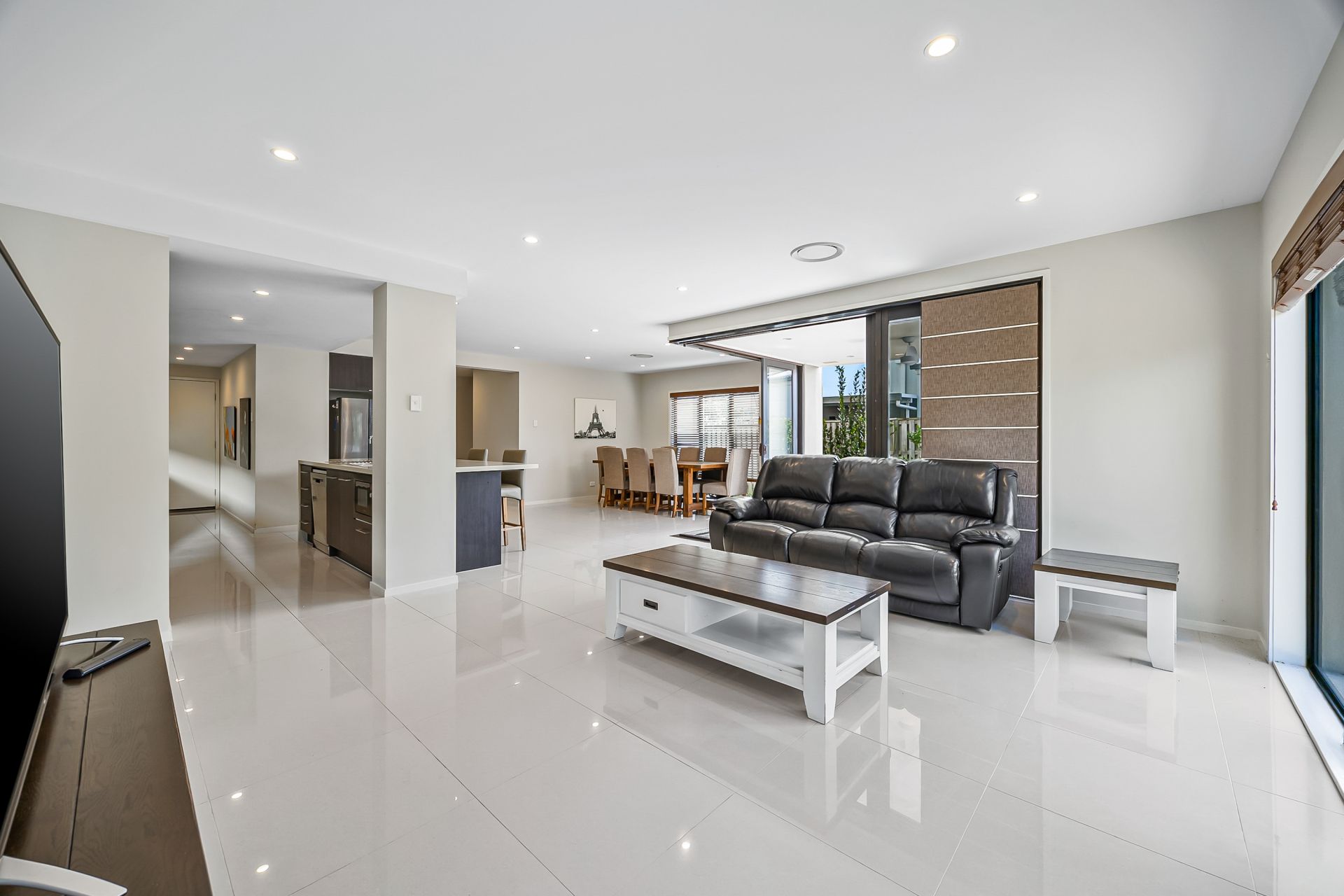 • Multiple living zones: Light-filled open-plan living, private upstairs retreat, and separate media room.