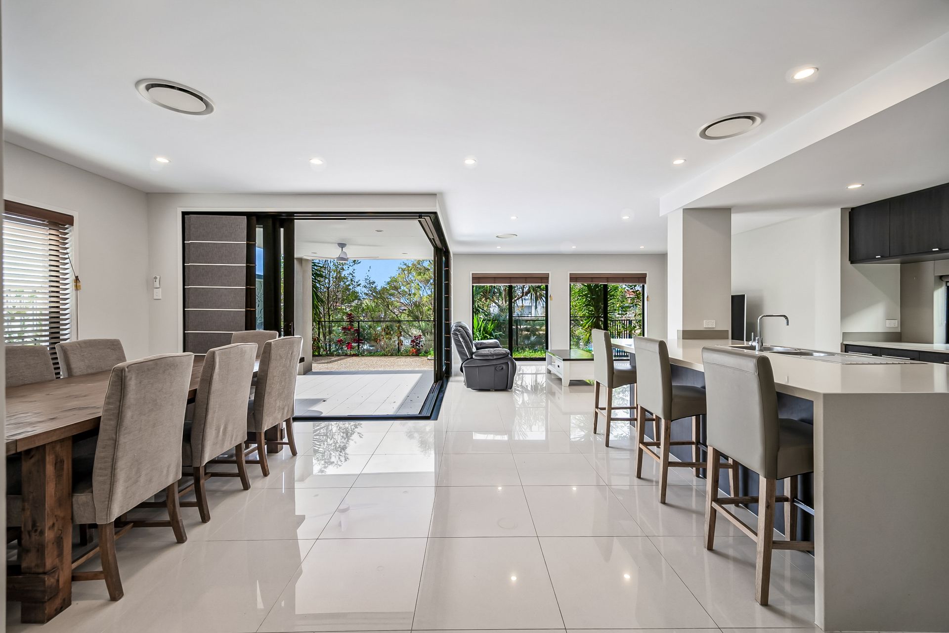 • Indoor-outdoor flow: Stacker doors open to a resort-style alfresco area with built-in BBQ, plunge pool, and decked sun-lounge.