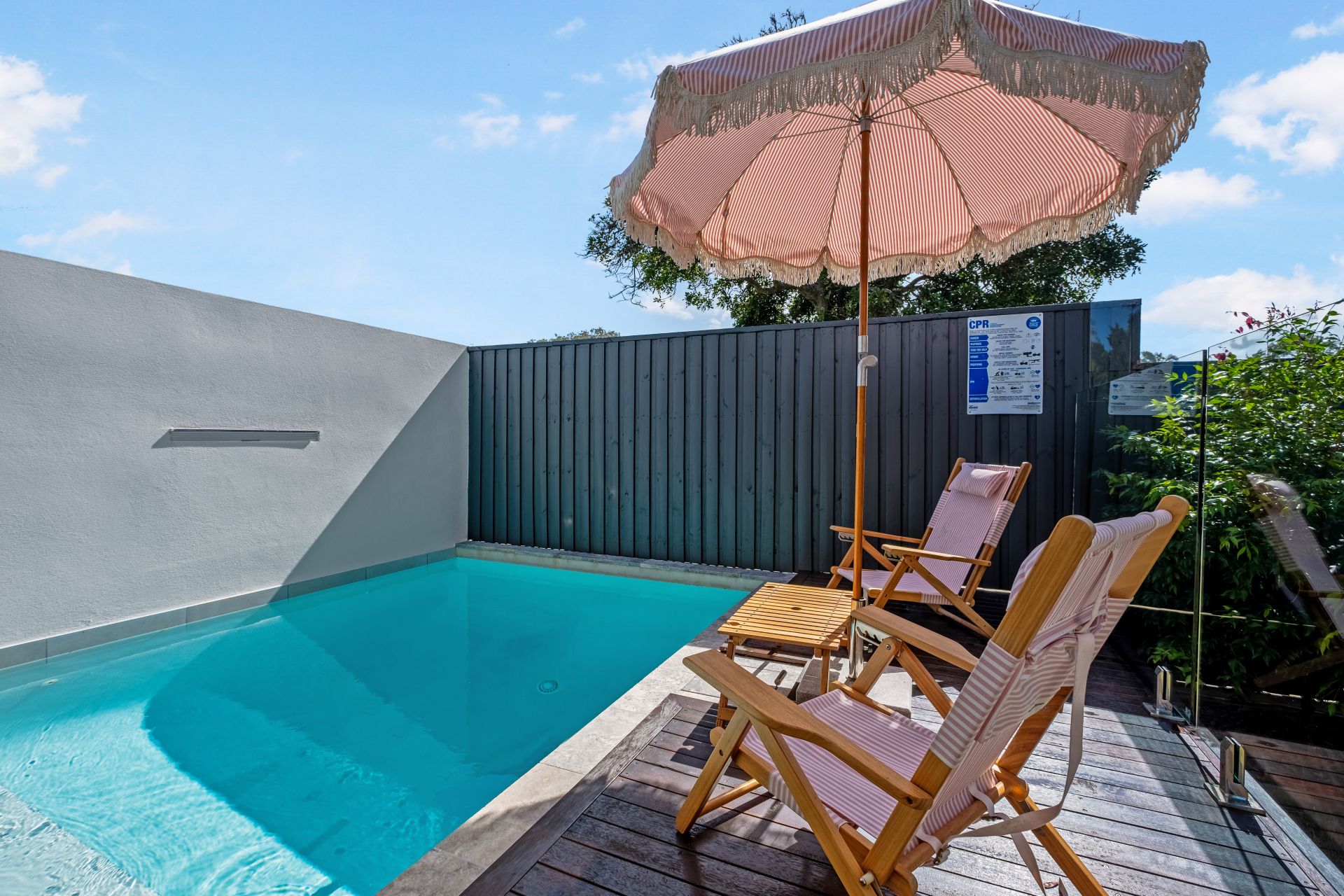 At the heart of the home is a spacious open-plan living, kitchen and dining area, flooded with natural light and designed for entertaining. Large bifold doors open to a covered alfresco deck, creating an effortless indoor-outdoor lifestyle. Overlooking the beautifully designed plunge pool—complete with a waterfall feature, bench seating, and semi-frameless glass fencing—this outdoor space invites quiet relaxation and social gatherings alike.