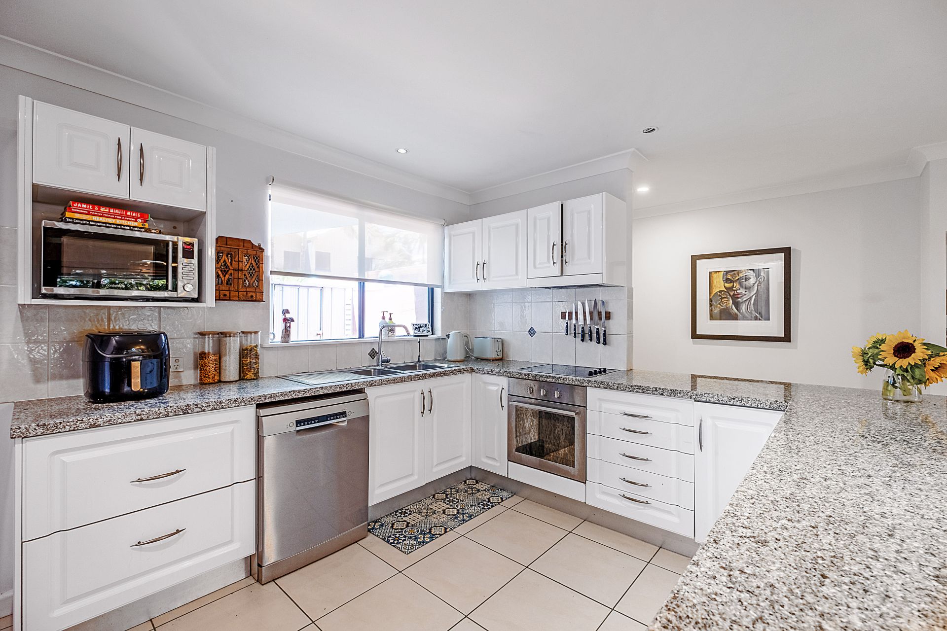 • Stylish kitchen with stone benchtops