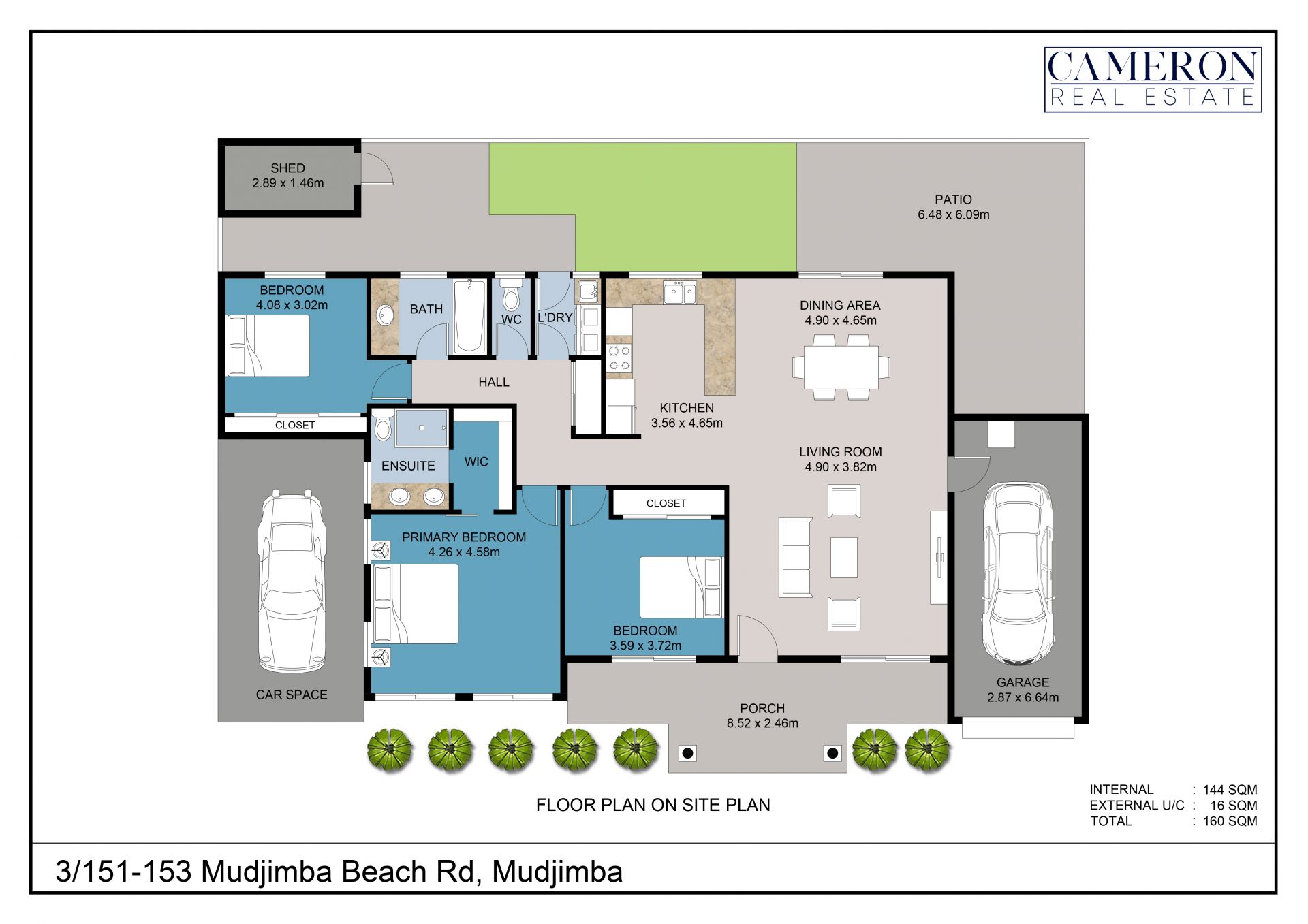• 3 bedrooms, 2 bathrooms (ensuite to master)