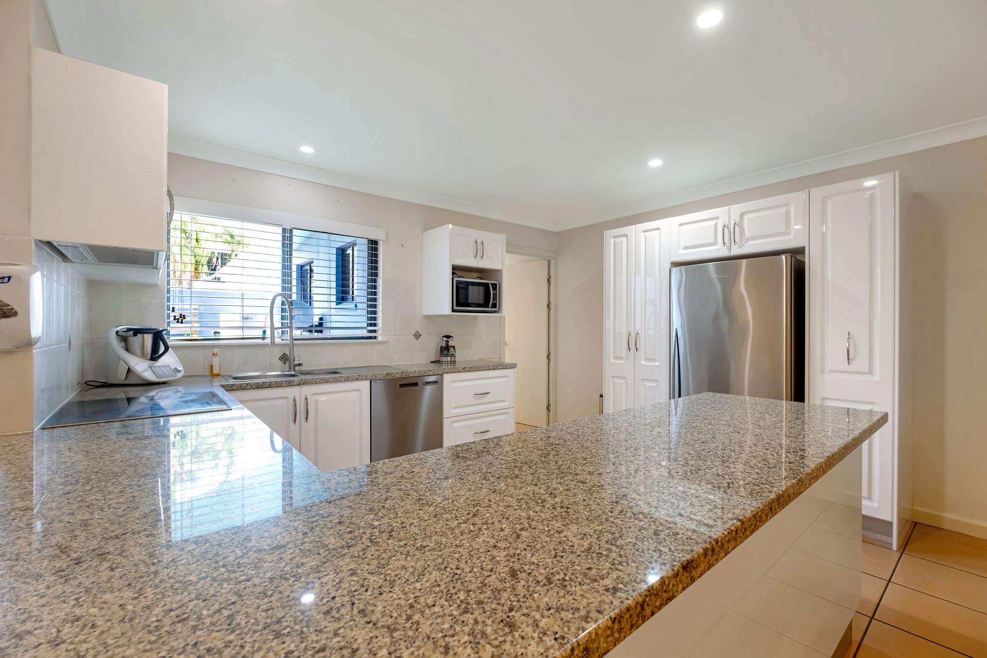 Entertainer’s kitchen with large stone benchtops, two-pack finished cupboards, and premium appliances